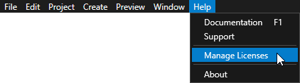 1.打开Kanzi Studio, 在 Kanzi Studio 中选择帮助 (Help) > 管理许可证 (Manage Licenses)。