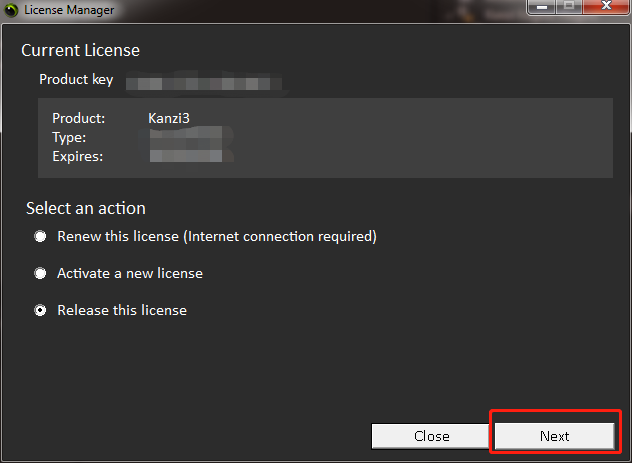 II. 点击next,进入释放license提示界面,确认需要释放,直接点击Release。