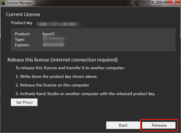 2. 迁移Node Locked License之前,请先Release License,再在新的运行环境下激活使用。